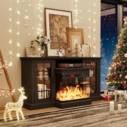 59'' Fireplace TV Stand with 3-Sided Glass, TV Cabinet for TVs up to 65", Modern Media Entertainment Center with Farmhouse Glass Door Storage Cabinets$180Upland, CA