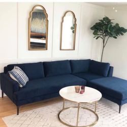 West Elm Andes 3-Piece Sectional Chaise + Ottoman - Navy Blue $800Long Beach, CA