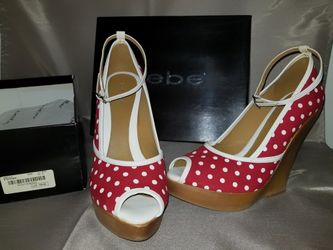 Red polka dot wedge platform , Bebe , 5" heel$40Rancho Cucamonga, CA