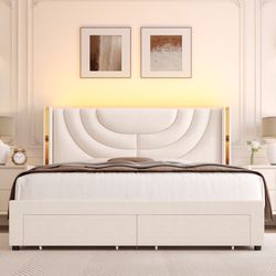 New King Bed Base with Charging Station and LED Lights, Metal Bed Frame with 4 Storage Drawers and Headboard, No Box Spring Needed, Easy Assembly, No $210La Mirada, CA