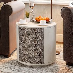 Round Light Gray 3-Drawer Nightstand,MDF Vintage Storage Cabinet for Bedroom, Living Room$60Anaheim, CA