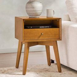 Nightstand with Charging Station, Solid Wood Night Stand with Drawer and Open Storage Space, Mid-Century Modern Bedside Table for Living Room Bedroom,$150Corona, CA