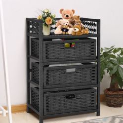 3 Drawer Storage Unit Tower Shelf Wicker Baskets Storage Chest Rack Black$30Chino, CA