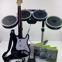 Xbox 360 Rock Band 2 3 Drum Set Guitar Fender Bundle Mic 3 Games$399Ontario, CA