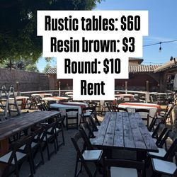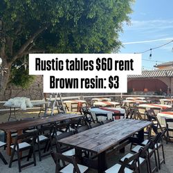 Rustic farm tables and brown resin chairs$60Paramount, CA