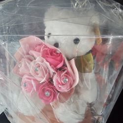Teddy Bear With Rose Bouquet In Box$50Corona, CA