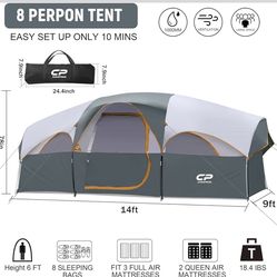Tent 8 Person Camping Tents, Weather Resistant Family Tent, 5 Large Mesh Windows, Double Layer, Divided Curtain for Separated Room, Portable with Carr$100Arcadia, CA