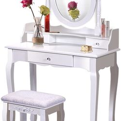White Vanity Makeup Dressing Table Set w/Stool 4 Drawer&Mirror Jewelry Wood Desk$185Beverly Hills, CA