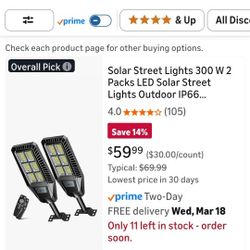 Solar Street Lights 300 W 2 Packs $48Crystal City, CA