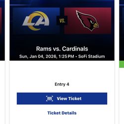 Rams Tickets Vs Cardinals 01/04/26$150Los Angeles, CA
