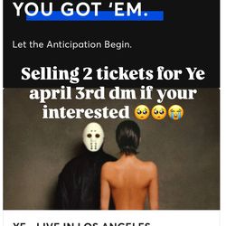KAYNE WEST TICKETS FOR SALE $680Los Angeles, CA