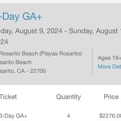 Baja Beach Fest 3 Day GA+ (1Ticket) $400 OBO$400Lynwood, CA