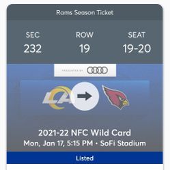 L.A. Rams v. Arizona Cardinals Wildcard Playoff Game Tickets$240Los Angeles, CA