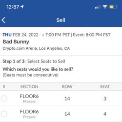 Bad bunny Crypto Arena Floor Tickets!!$1,600Los Angeles, CA