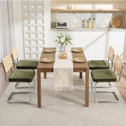 Zesthouse Mid Century Modern Dining Chairs Set of 4, Natural Rattan Dining Chairs with Solid Wood Back & Chrome Base, Upholstered Velvet Fabric, Green$249Fontana, CA