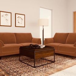 SOFA SET WOVEN FABRIC RUST VELVET CURVED TUFTED CURVED ARMS ESPRESSO FINISH LEGS $1,199Anaheim, CA