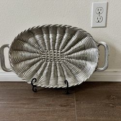 1980-70s Mexican Pewter Basket Weave Serving Platter 12/20 Inches$95Long Beach, CA