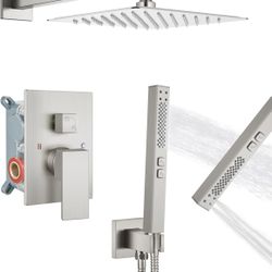 Shower Faucet Set Rainfall Shower System with Square Showerhead and Handle Set Fixture with 2 in 1 Function Handheld Sprayer Wall Mounted Trim Repair $125Anaheim, CA