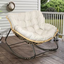 Large Outdoor Indoor Patio Rocking Egg Chair, Oversized Papasan Chair Rocker with Cushion and Frame, Grey$119San Dimas, CA
