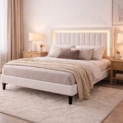 Queen Size Velvet Bed Frame with LED Light, Adjustable Vertical Channel Tufted Headboard, Strong Wooden Slats Support, Noise-Free, No Box Spring Neede$165Rancho Cucamonga, CA