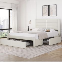 Bed Frame with 2 USB Charging Station/Port for Type A&Type C/3 Storage Drawers, Leather Upholstered Platform Bed with Headboard/Solid Wood Slat Suppor$175Fontana, CA