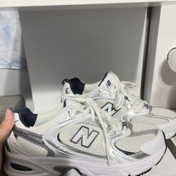 The New Balance 530 in White/Silver/Navy (model MR530SG) features synthetic and mesh uppers with ABZORB cushioning$75Chino, CA