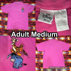 Vintage The Disney Store Tigger & Eeyore Embroidered Pink T-Shirt Adult Medium$15Ontario, CA