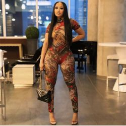 New Woman’s Body Suit Jumpsuit Sheer Size Small Stretchy Black Print Valentines Day $20Riverside, CA