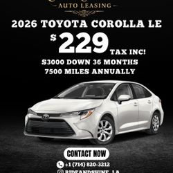 2026 TOYOTA COROLLA LE$229Los Angeles, CA