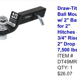 Draw-Tite Ball Mount w/ 2" Ball for 2" Hitches - 3/4" Rise, 2" Drop - 7,500 Ibs$15Windsor Hills, CA