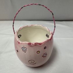 Vintage 90s Hand-Painted Pink With Rhinestone Embellishments, Twisted Wire Handle Ceramic Egg Basket$15Rowland Heights, CA