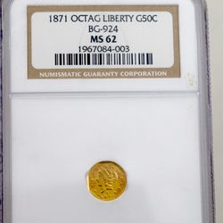 California gold 50c coin 1871 ms62 ngc graded gold coin$400Garden Grove, CA