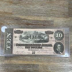 $10 Currency Confederate States of America 1864 Civil War Era Uncirculated$90Los Angeles, CA