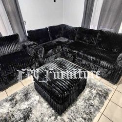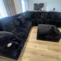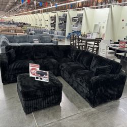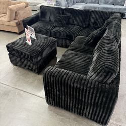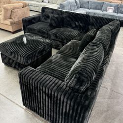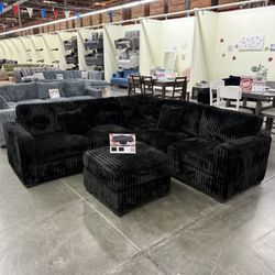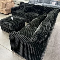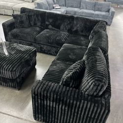 New! Black Couch, Plush Sectional, Black Sectional And Ottoman, Corduroy Sectional, Black Corduroy Couch, Sofa, Sectionals, Fluffy Sofa And Ottoman$549City Of Industry, CA