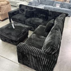 BLACK 99x99 FUR LIKE CORDUROY SECTIONAL WITH OTTOMAN $580Chino, CA