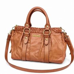 Miu Miu Tan Leather Style Satchel Bag With Strap & Gold Hardware$345Los Angeles, CA