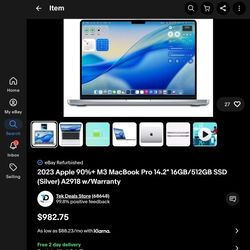 Macbook Pro M3 14"$828Inglewood, CA