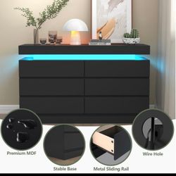 6 Drawer Dresser, Modern Black Drawer Chests with Power Outlet and Led Light, Wide Chest of Drawers for Storage and Organization for Bedroom, Living R$120Rancho Cucamonga, CA