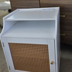 2 White Rattan Night Stands with Charging Station New $75Fontana, CA