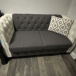 ✅️✅️4 pc Grey boucle fabric sectional sofa with storage chaise and love seat and pop up sleep area in center drop down tray tables✅️✅️✅️$748Inglewood, CA