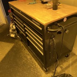 Used Husky rolling tool chest / workbench with a wood top and built-in power strip $350Los Angeles, CA
