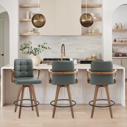 26” Barstool Set of 3, Leather Upholstered Bar Chair, Swivel Bar Stools with Back and Arms,Modern Counter Height Bar Stools for Kitchen Island (Green)$175Arcadia, CA