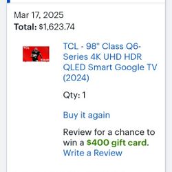 New 98" TV$1,200Bakersfield, CA