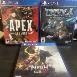 Trine 4 The Nightmare Prince, Apex Legends, & Nioh 2 Brand New Sealed PS4 Lot$45Bakersfield, CA