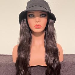 Bucket Hat with Attached Long Wavy 18 Inch Wig Hair Extensions, Heat Resistant Synthetic Fiber, Natural Black Color *NEW In Original Packaging*$14Pumpkin Center, CA
