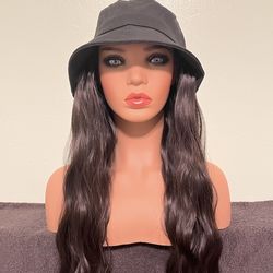 Bucket Hat with Attached Long Wavy 18 Inch Wig Hair Extensions, Heat Resistant Synthetic Fiber, Natural Black Color *NEW In Original Packaging*$15Pumpkin Center, CA