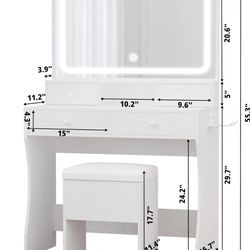 Vanity Desk with Mirror, Power Outlet and 10 Lights, Makeup Table with 7 Drawers, 3 Color Modes Available for Bedroom, White Almost New$110Bakersfield, CA