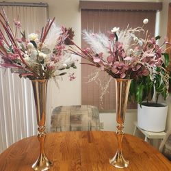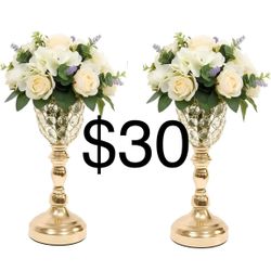 13.2in Gold Vases for Centerpieces, 2Pcs Crystal Vases for Flowers, Metal Floral Stands for Wedding, Flower Stands for Table Wedding Reception Party E$30Bakersfield, CA