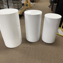 3Pcs Cylinder Pedestal Stands, 24"/22"/20" White Round Cylinder Stand Pedestal Display, $40Bakersfield, CA