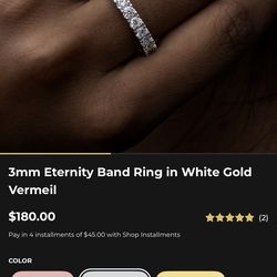 3mm Eternity Band Ring in White Gold Vermeil$100Bakersfield, CA
